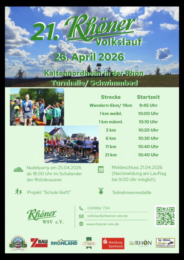🏃♂️ Save the Date – 21. Rhöner Volkslauf! 🏃♀️ 📅 26. April 2026 | 📍 Kaltennordheim Mach dich bereit für den Lauftag des Jahres! Ob 6 km, 11 km, Halbmarathon, Kinderlauf oder Wanderung – hier ist für jeden was dabei!…